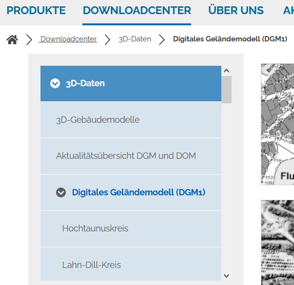 Seit dem 01.02.2022 gibt es eine Vielzahl an Geodaten frei bei der Hessische Verwaltung für Bodenmanagement und Geoinformation zum Download. Über den Download-Bereich und den Reiter 3D-Daten gelangt man zu den DGM1- und DOM1-Daten. Nun sind die Daten auf Verwaltungsebene gegliedert.