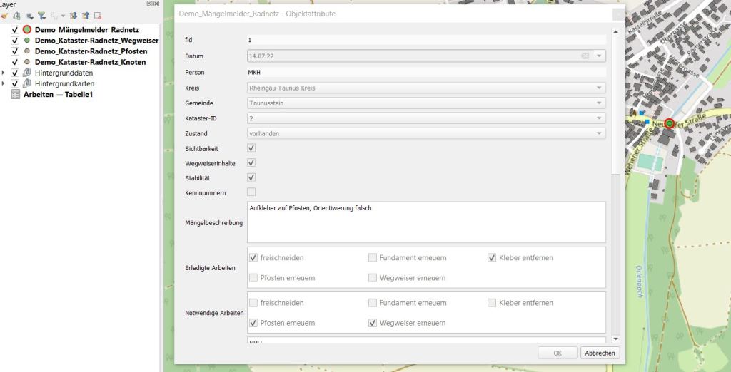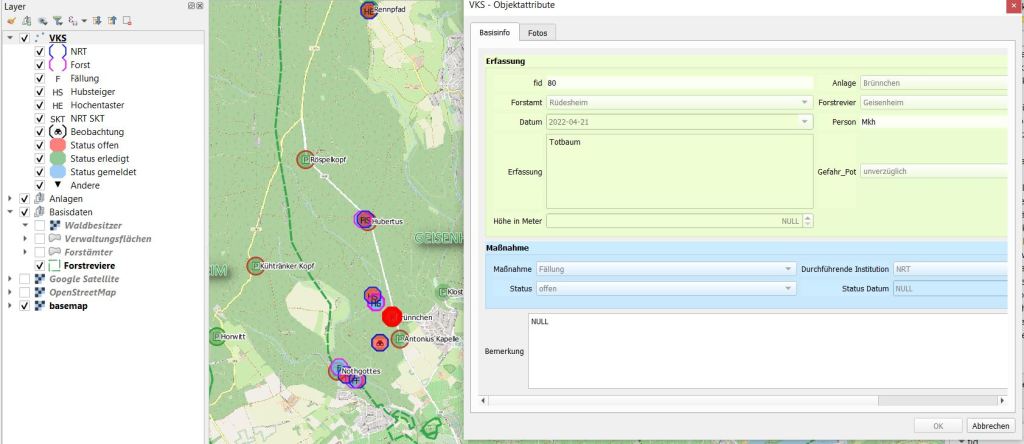 Es können aber auch komplexe Projekte aufgesetzt werden, bei denen zum Beispiel die Hintergrundlayer für einen automatischen Datenabgleich (z.B. Flächeneigentümer, Schutzgebiete, Verwaltungsbereiche) herangezogen werden. Je nach Projektaufbau können die Symbolisierungen attributgesteuert werden, sodass Objekte je nach Erfassungsdatum bzw. Kontrolldatum unterschiedlich symbolisiert werden. Bilder, Dokumente, Vorauswahllisten und vieles mehr können eingerichtet werden. Hier ein paar Screenshots von Projekten, um einen Eindruck zu bekommen. Oder nachfolgend als Videozusammenstellung.